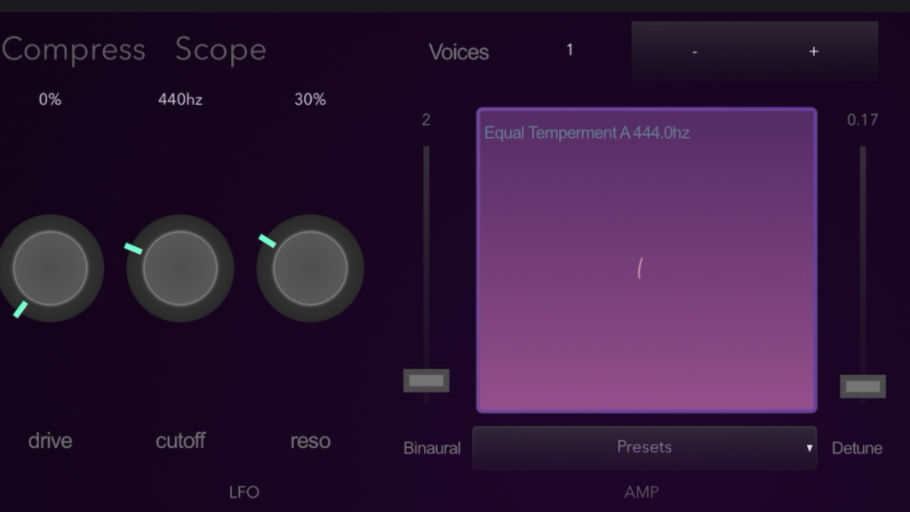 You’ll see that little slider next to the purple screen—yep, that’s where the magic happens. It’s dialed in at 2 Hertz, which is right in the Delta brainwave sweet spot. Now, this app is something else—it’s like a synth with some basic controls, but the real gem is that binaural slider. You can set it anywhere from Delta to Beta, and it’ll craft those binaural beats right along with your tune. You can even see the waveform grooving on the purple screen. This app disappeared for a bit, but it’s back, and I’m stoked to have it on my latest iPad.